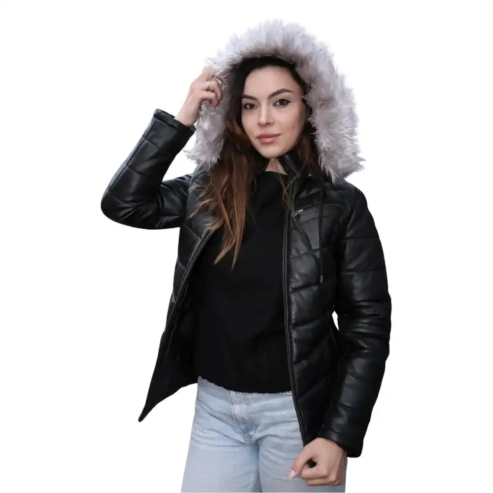 Turn heads and command the spotlight with the Snow’s Hooded Winter Leather Puffer Jacket. This isn't just a winter coat; it’s a high-fashion statement piece designed for women who want to blend avant-garde style with premium warmth. Featuring a mesmerizing silver metallic finish, this jacket ensures you remain the center of attention while staying perfectly insulated against the cold.