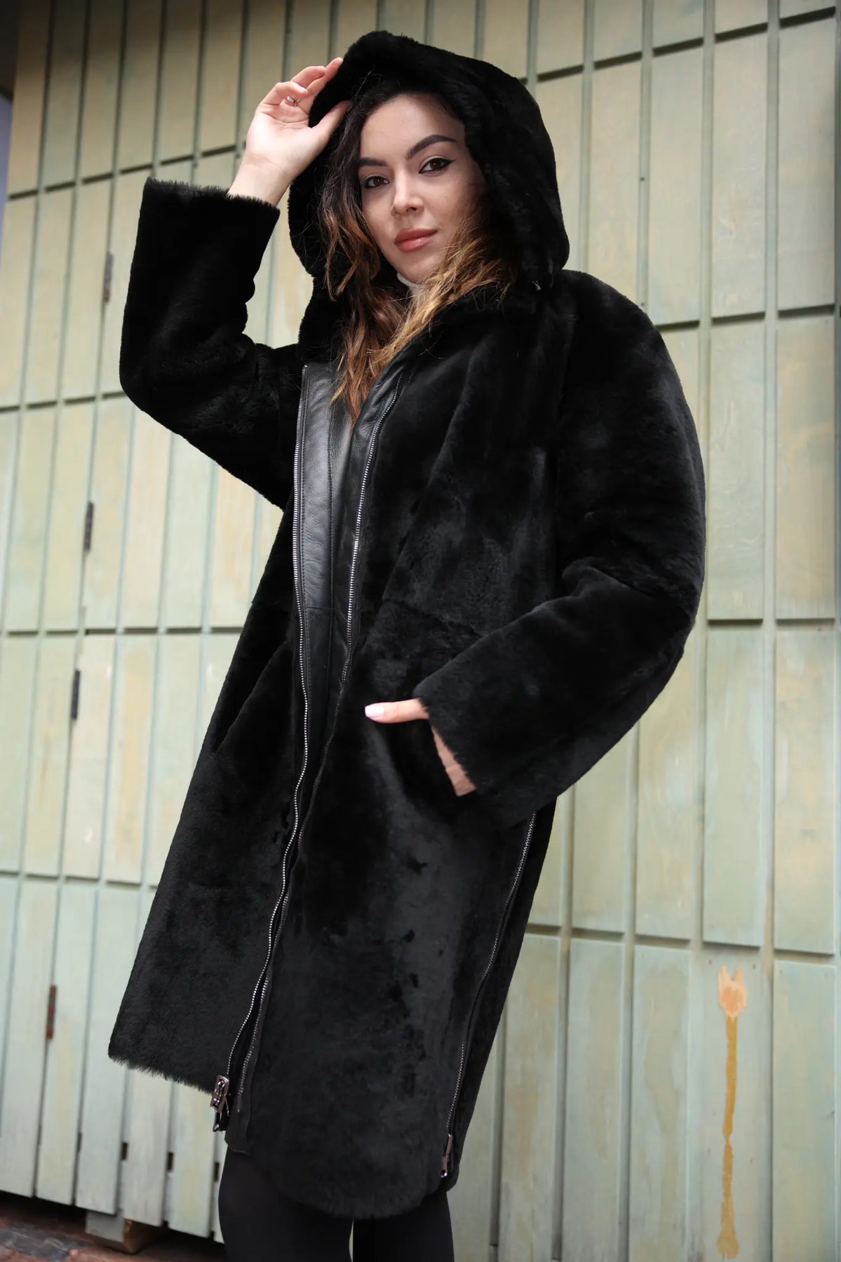 Stay warm and stylish this winter with the Avalon black oversize Reversible Sheepskin long coat, featuring a luxurious reversible design, a shearling-trimmed collar, and open fur cuffs. Crafted from premium real sheepskin shearling, this coat is built to withstand freezing Canadian winters while offering unmatched versatility and elegance.